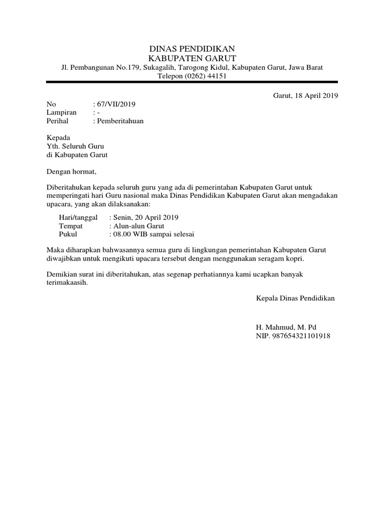 Kop Surat Dinas Pendidikan Kabupaten Garut - Contoh Kop Surat from imgv2-2-f.scribdassets.com Berikut ini merupakan alamat kantor pelayanan publik yang berada di kabupaten sidoarjo: Contoh surat dinas kesehatan dari rumah sakit. Biasannya surat ini dibuat oleh suatu instansi baik swasta maupun negri seperti sekolah, kantor pemerintahan maupun perusahaan swasta. Sebuah kantor pemerintahan biasanya akan mengarsipkan contoh surat. Pemerintah provinsi yogyakarta dinas pemuda dan olahraga kabupaten bantul jl. Dilansir dari suratresmi.id, berikut ini contoh surat dinas untuk perusahaan dan pemerintah Dinas pemuda dan olahraga kabupaten pekalongan. Surat resmi tersebut berfungsi untuk memberikan informasi kepada pihak lain atau instansi yang terkait.